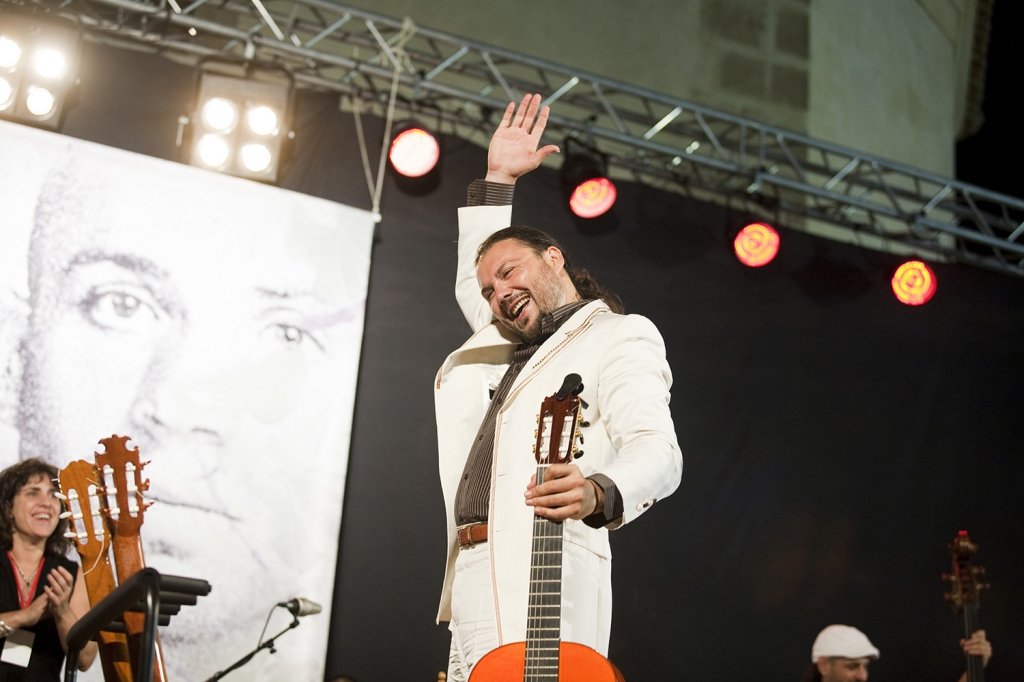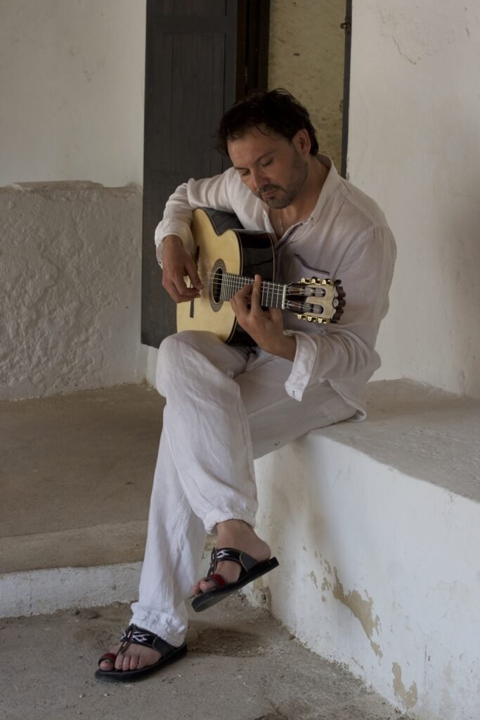 Camina escenarios como quien pisa Tierra Santa, llora canciones y hace que poetas muertos vuelvan a respirar en su Voz, El Hombre que Sana con acordes las heridas del Tiempo.